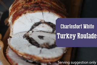 What is it you ask?.... it is a boneless turkey breast joint, that is lightly basted for extra succulence, then stuffed with a black pudding and red onion chutney and rolled in unsmoked streaky bacon.